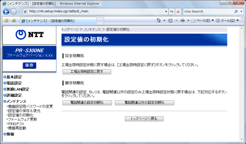 | メンテナンス−設定値の初期化 |